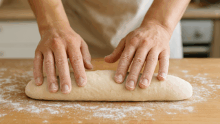 仕込みでは、生地に牛乳を使うのが特徴です。牛乳を加えることで風味が豊かになり、クラストは香ばしく、クラムはしっとりとした口当たりに。砂糖は少量で良いですが、ほんのりとした甘みがイーストの発酵を助けてくれます。また、生地のやわらかさが成功のカギです。水分量を通常のパンよりもやや多めに設定し、手に少しくっつくくらいがベスト。こね上げの温度は26℃前後を意識すると、発酵が安定します。仕込みの段階での丁寧さが、後の香ばしさと食感につながっていくのです。
