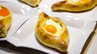 二次発酵は天板やスキレットの上で行うのがポイントです。20〜30分休ませ、生地がふっくらしてきたら、中弱火でじっくり両面を焼きます。この「焼き締め」の工程がクラストのパリッと感を引き出します。その後、180℃のオーブンで10分程度焼成すると、中までしっかり火が通り、ふわっとした仕上がりになります。焼き加減はご家庭のオーブンによって変わりますので、最初は試しながら時間を調整してみると良いでしょう。焼き上がった直後に半分に割ると、気泡が不規則に並んだ断面が現れ、思わず写真を撮りたくなるはずです。